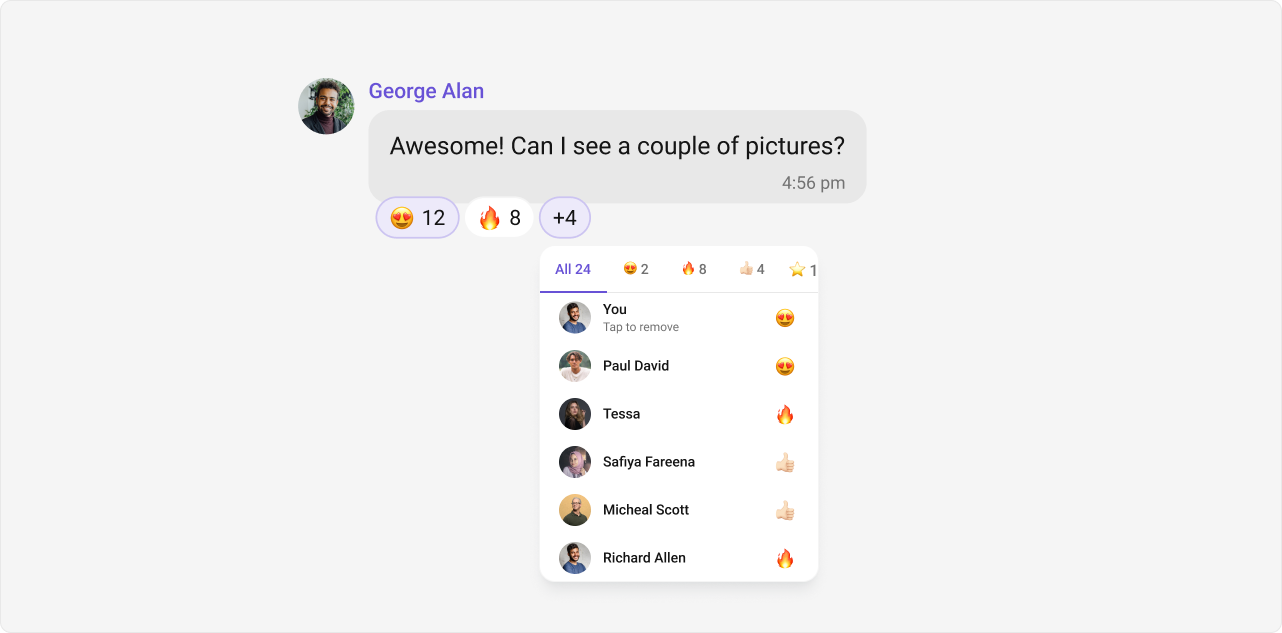 CometChat’s Reactions feature adds a layer of expressiveness to your chat application by allowing users to react to messages. With reactions, users can convey a range of emotions or express their thoughts on a particular message without typing out a full response, enhancing their user experience and fostering greater engagement.