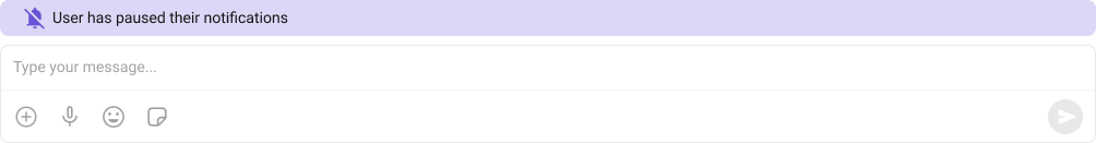 | Disable Typing Events | Disables the typing indicator for the current message composer. | disableTypingEvents={true} |