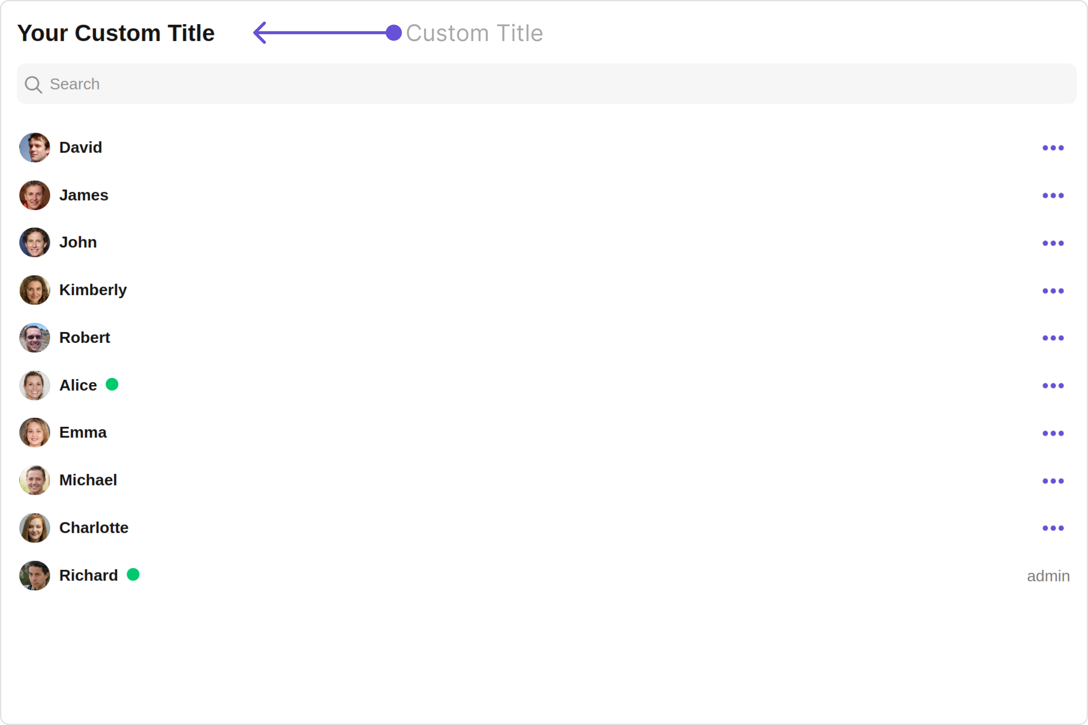 To fit your app’s design requirements, you can customize the appearance of the Group Members component. We provide exposed methods that allow you to modify the experience and behavior according to your specific needs.Style
